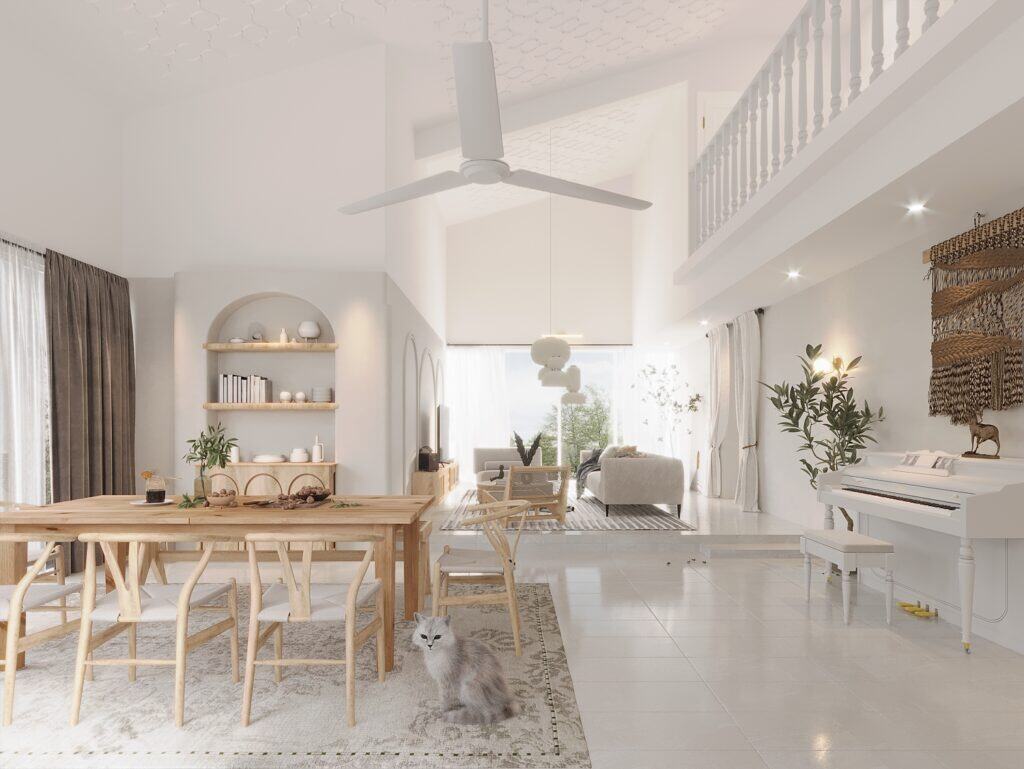 - Scandinavian homes: soft whites, greys, and pastels that reflect natural light, creating airier Malaysian interior spaces. Perfect for modern condo renovations.